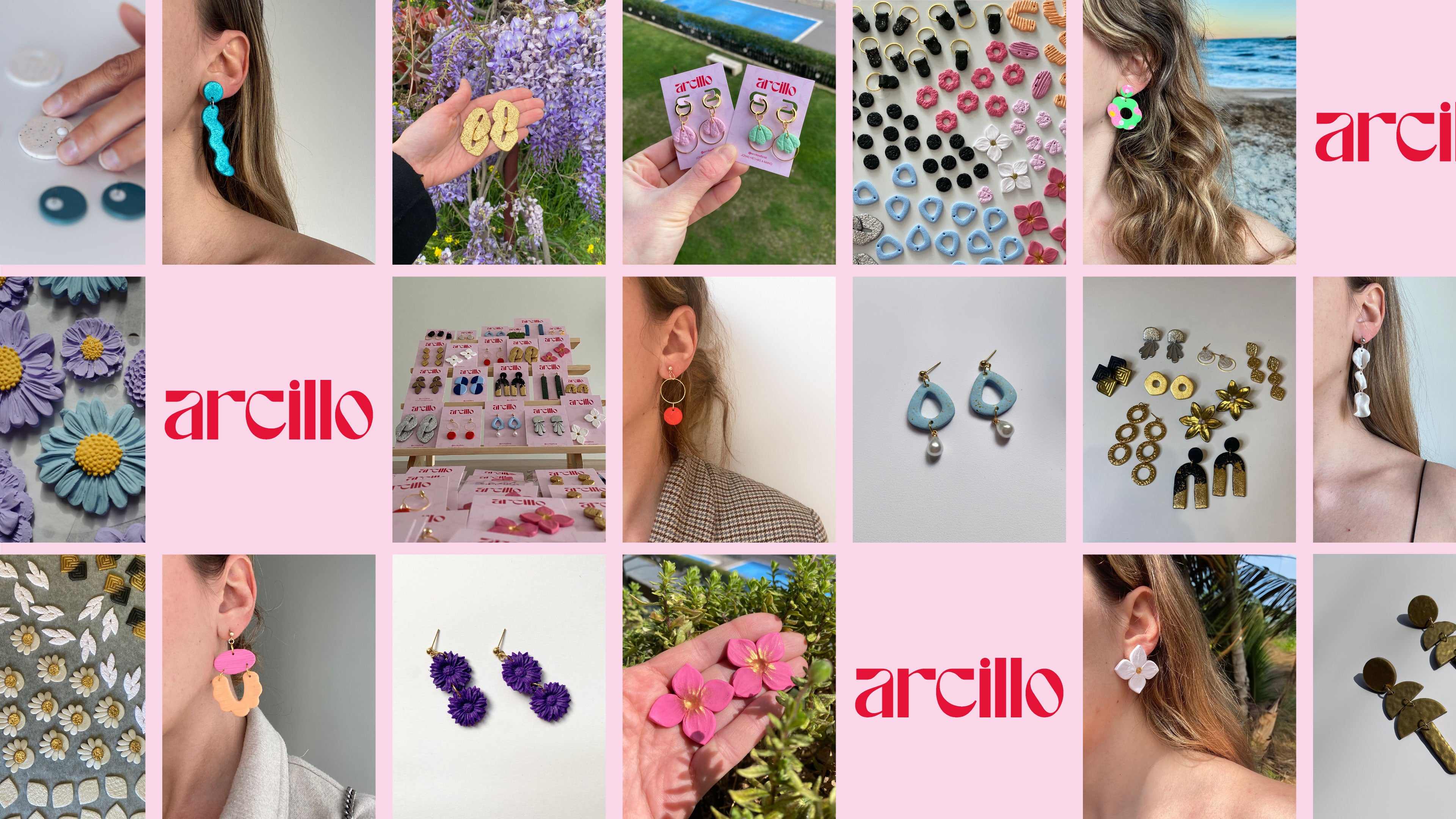 Utilizo arcilla polimérica de alta calidad para modelar cada pendiente, y todos los ganchos son de acero inoxidable quirúrgico, chapados en oro de 18 quilates o en plata de ley 925, ideales incluso para pieles sensibles.